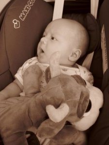 about 7 weeks. (KJ and his moo-moo)