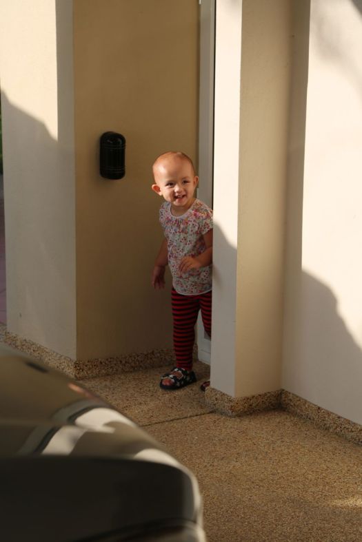 While we waiting for the school bus, we play a bit of hide and seek.